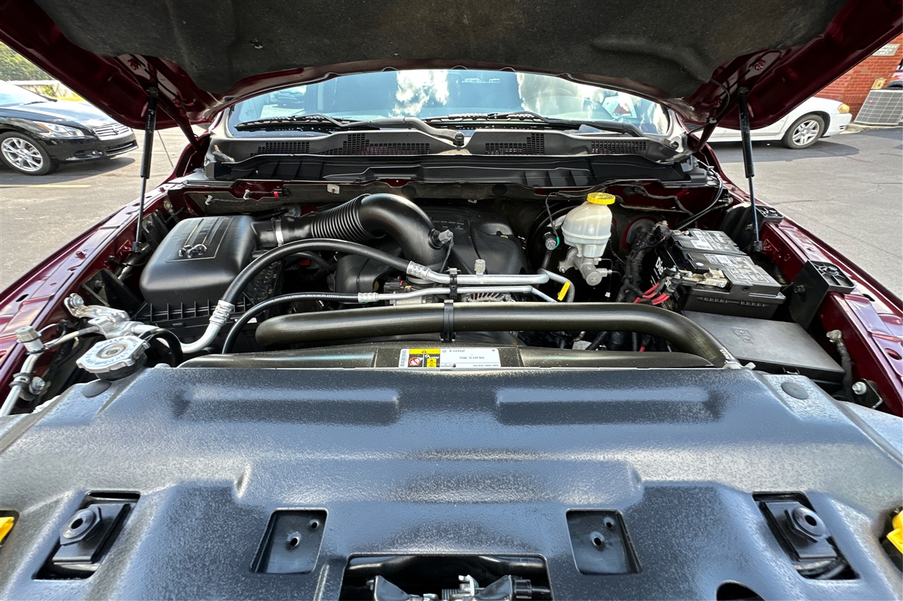 Get ready to hit the road in style with this sleek and bold Maroon 2018 RAM 1500! This truck is a powerhouse in both performance and appearance, boasting a rear-wheel drive system with a 3.21 Rear Axle Ratio for optimal handling. With a GVWR of 6,800 lbs and a towing equipment package that includes a trailer wiring harness and trailer sway control, this truck is ready to take on whatever adventure you have in mind.Under the hood, you'll find a robust engine with an engine oil cooler to ensure peak performance and longevity. The 730CCA maintenance-free battery and 160 Amp alternator provide reliable power with every start, while the electric power-assist steering makes maneuvering effortless. The 26-gallon fuel tank ensures you can go the distance without interruption.
