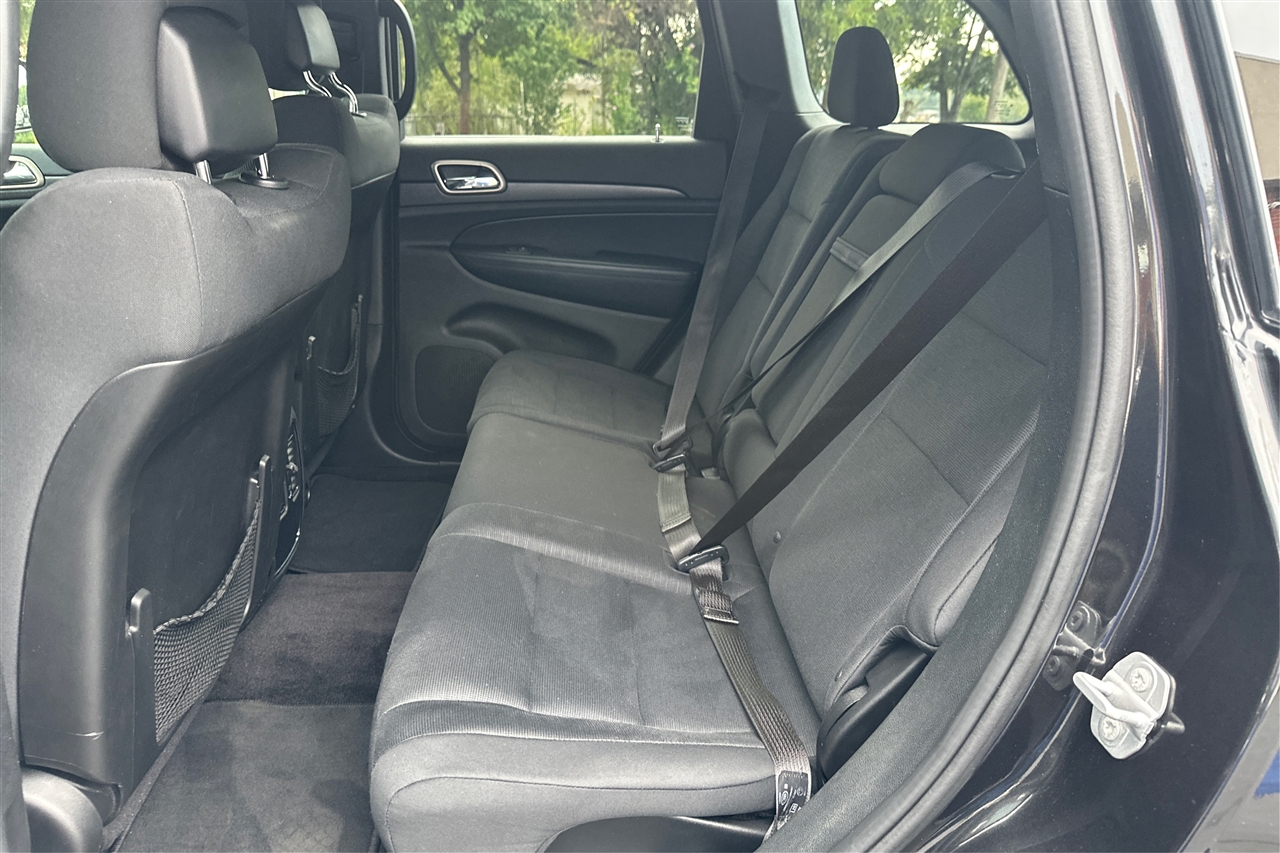 Need to pack up for a weekend getaway? No problem! The spacious cargo area, complete with cargo tray/organizer and concealed storage, has plenty of room for all your gear. Plus, the rear seats conveniently fold flat to accommodate larger items, making this Grand Cherokee perfect for all your adventures – whether it's a trip to the beach or a camping excursion in the mountains.